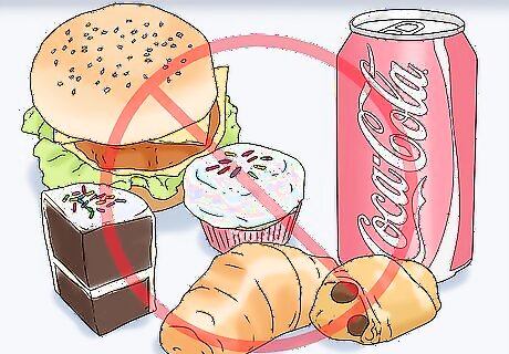 Cut out sugar and processed foods and beverages. Unfortunately, these foods can increase the amount of uric acid in your body, so they may cause gout flare-ups. Cut out baked goods, pastries, treats, processed foods, and sweetened drinks. Since fruit also contains sugar, limit yourself to 1 or 2 servings of fruit each day.Tip: When your body breaks down fructose, it turns into purine. That means foods high in sugar may cause your gout flare-ups. This includes both natural and processed sugar.