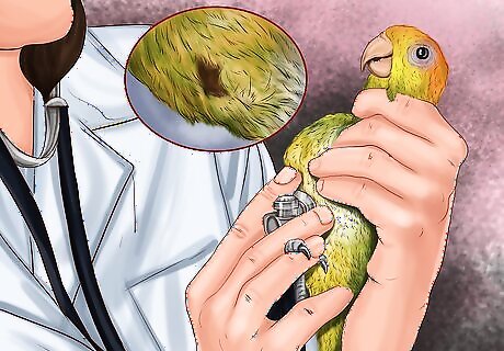 Get a veterinary diagnosis. Take your lovebird to a veterinarian if you suspect avian pox. When you call for an appointment, let the veterinary office know that you suspect pox, so that they can keep your bird isolated and avoid spreading the infection. The symptoms of lovebird pox may look a lot like tumors, abscesses, or a bacterial or viral infection. This is why a veterinary diagnosis is necessary. Diagnosis of avian pox is done by biopsying the pox and looking at the it under a microscope.