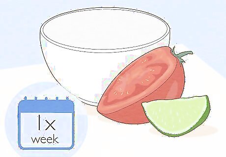 Use the treatment weekly. There is no limit to how often you can apply this treatment. To combat the regular buildup of oil, apply this treatment on a weekly basis. If you are experiencing excessive oil buildup, use this treatment two to three times a week. Again, tomatoes provide a number of benefits for your skin. In addition to reducing your pores (thereby eliminating some forms of mild or moderate acne), tomato and lime pore reducers lighten dark spots on the skin make your skin look brighter and younger.