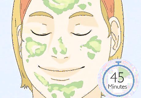 Let the mixture sit. Leave the blended tomato and avocado on your face for at least 20-30 minutes before rinsing. This mask will help cool the skin as well. The tomato works to remove the oil while the avocado offers antiseptic and hydrating properties. You can let the tomato and avocado sit for a little longer in order to provide deep pore cleansing. 45 minutes to an hour can help you achieve a deep cleanse.