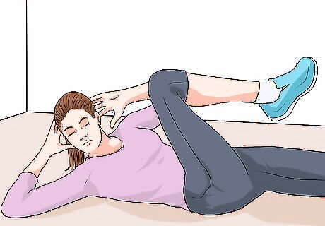 Perform abdominal exercises to strengthen your core. Lying on your back, press your lower back into the ground. Squeeze your lower abdominal muscles as you do this and pull your belly button inward and upward. Stay in this position for 10 seconds. Do 8-10 reps of this exercise daily. Your core helps support your back for greater stability. You can also do curl-ups, where you lie down on your back with your legs bent and place your arms across your chest. Flatten your lower back against the ground as you raise your head and shoulders from the floor. Keep your lower abdominal muscles tight as you do this. Stay in this position for 2-4 seconds and then lower back down. Try to do 2 sets of 10 curl-ups each, once a day.