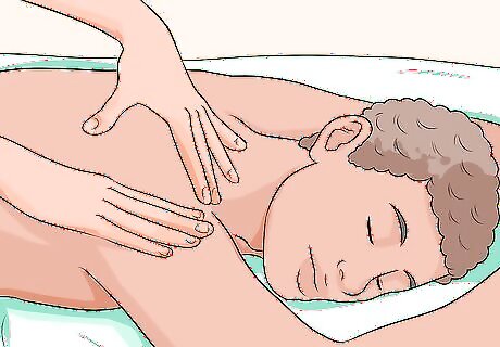 Get a deep tissue massage to ease pain and discomfort. Look for a massage therapist who is skilled in treating patients with spinal conditions. Ask your primary care doctor for a referral to a massage therapist. A deep tissue massage on your lower back and legs can help to relieve pain in these areas. You may need to see your massage therapist regularly for deep tissue massages to deal with the pain. Schedule monthly massages so your spine does not become too tense or inflamed. Your massage sessions may be covered by your health insurance, depending on your provider. Contact your provider for more information.