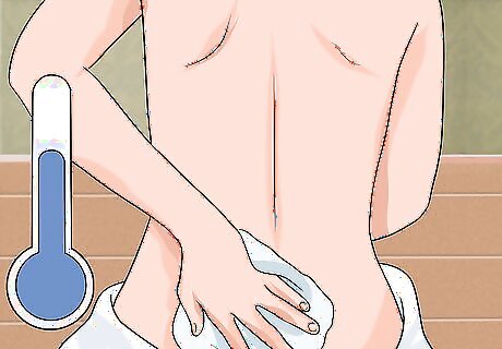 Put a hot compress on your back to ease inflammation and pain. Wrap the hot pack, or hot water bottle, in a towel before putting it on. Apply the hot pack for 10 minutes at a time.