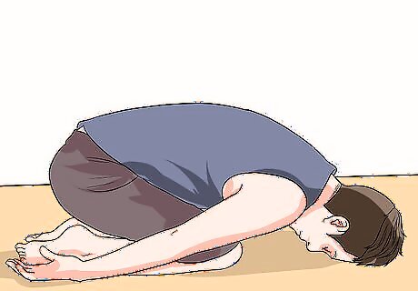 Do back stretches to keep your back flexible and relaxed. Lie down on your back and pull your knees to your chest. You should feel a stretch in your lower back. Stay in this position for 30 seconds and then slowly release your knees. Perform this stretch 4-6 times, once a day. Do another stretch where you position yourself on your hands and knees. Slowly sit back on your heels with your toes flat on the ground. Stretch your chest and arms out in front of you. Lower your chest to the ground, keeping your arms outstretched. Hold this stretch for 30 seconds. Do this stretch 4-6 times, once a day.