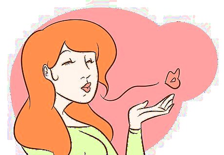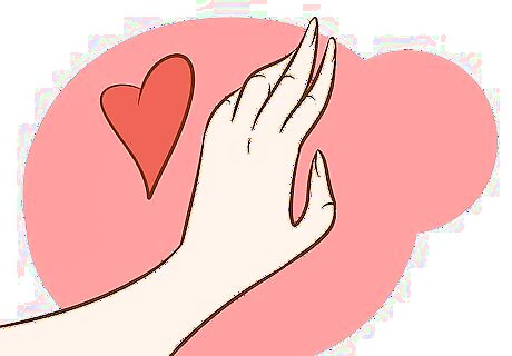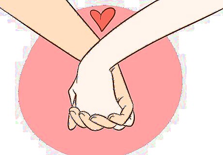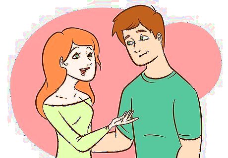 Be affectionate. Hold his hand with both your hands or wrap your arms around his. Put your hand on his face, run your fingers up and down his arm or hold his hand against your face or chest. It's okay to be affectionate with your man as long as you aren't being clingy. Affection is about devotion and love; clinging is about ownership. Follow his nonverbal signals to learn what he likes and doesn't like.