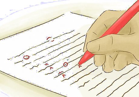 Mark important words or sentences. Analyze each line for the subtext, or the meaning behind the spoken words. Subtext is conveyed by the way you say the lines. Give yourself some clues by going through your character’s lines and marking words that need emphasis to convey the meaning of the line. Mark words by underlining them or writing an accent mark above them.