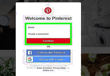 Go to the Pinterest website. It's located at https://www.pinterest.com/. If you're already logged into Pinterest, this will open your home page. If you aren't logged into Pinterest, click Log in in the top-right corner of the page, enter your username and password, and click Log in.