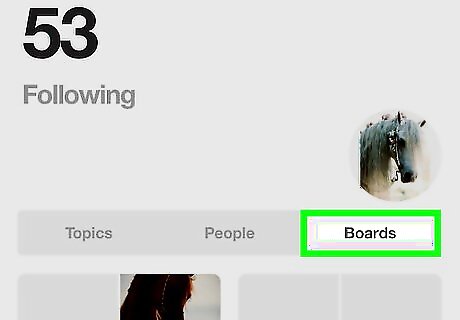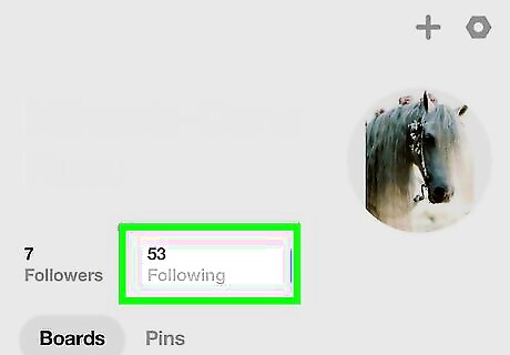 Tap Following. It's an option below your name on this page. On iPhone, you'll need to be viewing "Boards" and not "Pins" to see this option. First tap Boards on the left side of the screen first if you don't see the Following button. The Following option will have a number above it that indicates how many boards you're following.