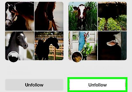 Tap Unfollow below a board. Doing so will immediately unfollow the board in question and remove it from your profile.