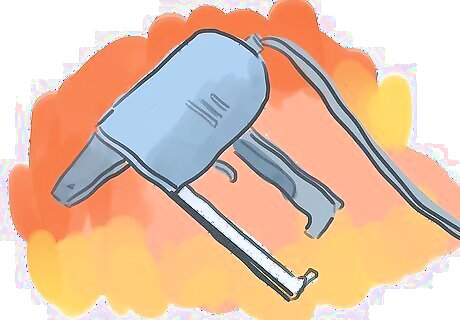 Find a staple gun and three-eighths inch staples. These are the main way you will secure the fabric, foam and batting. Also, purchase upholstery thread, needles and tacks for a more professional look.