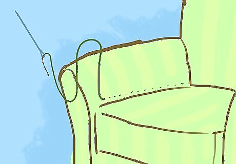 Sew the arms and piping by hand, using upholstery thread and a needle. Refer to the picture of your chair so that you can see how excess fabric on the arms is folded and attached.