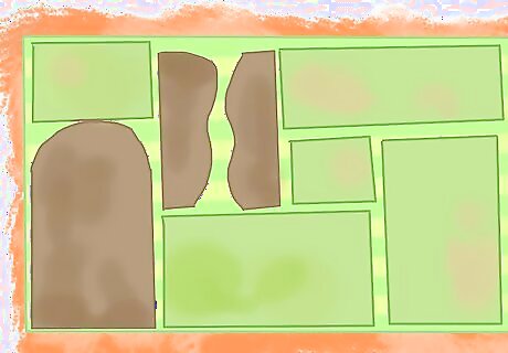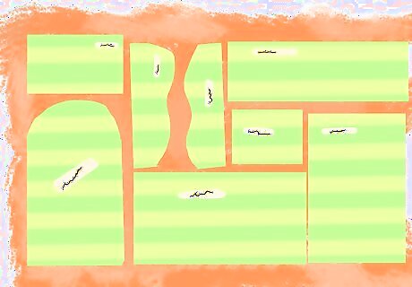 Lay your yards of fabric on the floor upside down. Set the pieces of old fabric atop it. Try to position them as close together as possible to avoid wasting fabric.