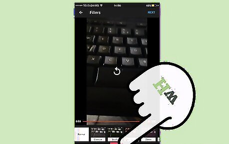 Tap the “circles” icon to add filters. This button appears in the bottom toolbar (in the middle) and will bring up a list of artistic filters to stylize your video. You can use the “8mm’ or “Sepia” filters to give the video a retro feel, or “Sketch” to give it a pseudo-animated look.