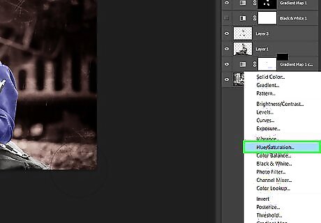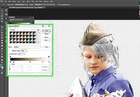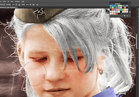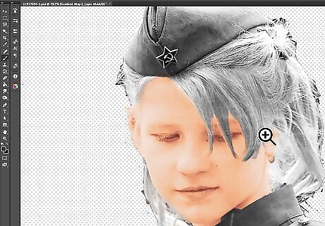 Fill in the mask. In the Gradient Map layer mask, press CtrlDel to fill in the mask and only show the selection; the skin. Since older photos don't have a lot of contrast, you will probably need to fine-tune the mask. Use black on the mask to block out the lips and the eyes, as well.