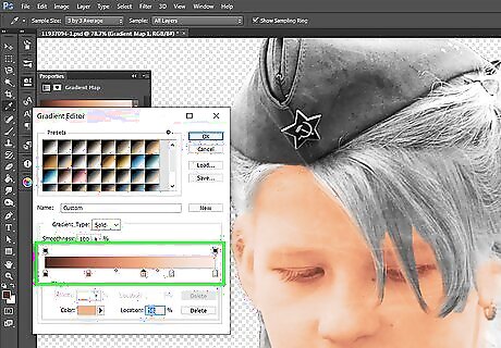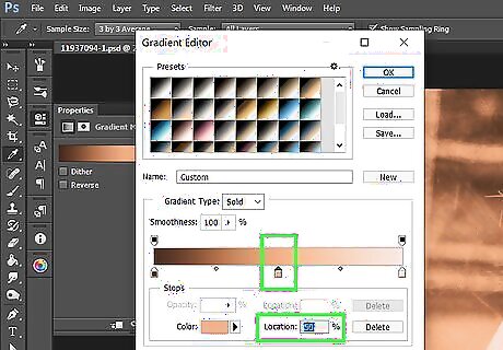 Start moving the sliders. Use the Location sliders to adjust where the gradients stop and start. This will help your image have more lifelike colors. You can still change and add colors to the gradient. Maybe it's too orange, so you change that color so it no longer is orangey.