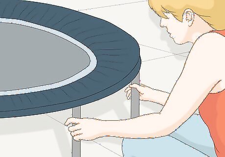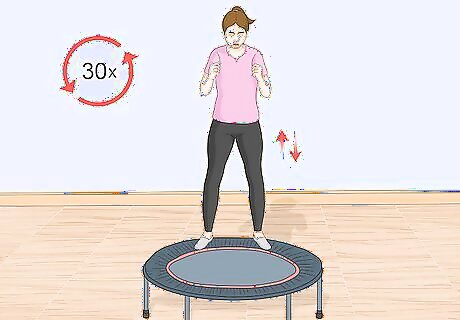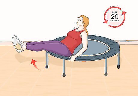 Lift your legs. Trampoline leg lifts are similar to regular leg lifts but reduce the amount of stress and impact on your joints. They also enable you to stretch your muscles better. To do a trampoline leg lift: Sit on the trampoline. Lift your legs off the ground. Tighten and contract your abs. Hold your contractions for 20 seconds. Release your contractions. Repeat your lifts and contractions 3 times.