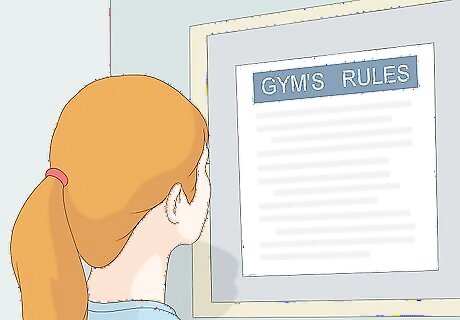Read the gym’s rules. While there are several universal rules that most all gyms will adhere to, you need to make sure to thoroughly read gym specific rules. Take note of posted rules when entering the gym. Ask gym workers for a printed copy of gym rules. Take a few minutes to go over it. Be aware that there may be rules posted for each trampoline. For instance, large trampolines with high vertical jumping points may have rules posted at the jumping location.