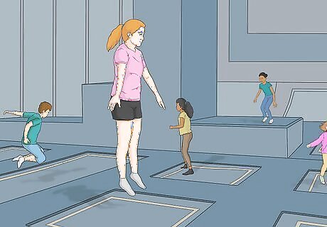 Understand who uses trampoline gyms. As a fun way to exercise, a wide variety of people use trampoline gyms. Thus, trampoline gyms are a great way to transition people who are uninterested in exercise into an exercise routine. Some groups who may especially benefit from trampoline gyms include: Children and teens. College students. Young professionals. People with joint problems. Elderly people who do not have bone problems. Elderly people suffering from osteoporosis should exercise caution when visiting trampoline gyms.
