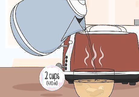 Pour 2 cups (470 mL) of boiling water over the burdock root. Bring the water to a rolling boil and then remove it from heat. Add it to the glass or mug by pouring it directly over the dried burdock root.