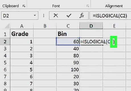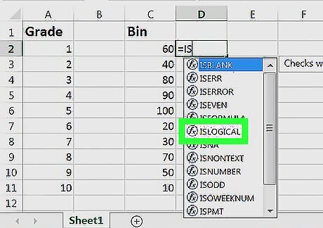 Double-click ISLOGICAL. The function should now appear in the cell.