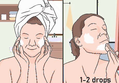 Press the oil into clean, damp skin to treat acne and inflammation. Wash your face with a gentle cleanser, then pat it to remove excess moisture. Your skin should be relatively dry but damp to the touch. Put 1 to 2 drops of neroli oil on your fingers and press or smooth it onto your face. Focus on the problem areas you want to treat. Allow your skin to air dry completely, then you can apply moisturizer or makeup as usual.