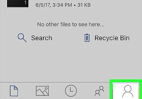 Tap Me. It's in the bottom-right corner of the screen. You'll see several options on this page: Add account - This option (top of the page) allows you to enter account details for another Microsoft account. Storage Space - Tap this to upgrade your OneDrive storage. Offline Files - Any files you've made available offline will appear here. Recycle Bin - Deleted files will appear here. Select the file and then tap the trash can icon at the top of the screen to permanently delete it. Settings - Change your OneDrive settings such as your default account, Touch ID and passcode options, and display preferences. Help & Feedback - Brings up a menu with various resources from Microsoft to help navigate OneDrive and report performance issues. Sign out of this account - Signs you out of your OneDrive account. You'll need to confirm this decision by tapping OK when prompted.