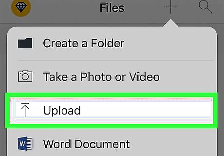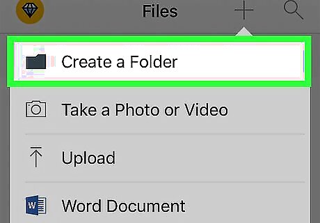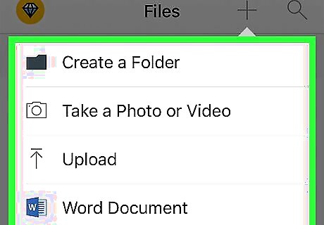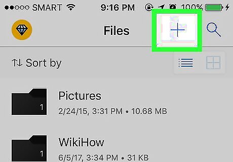Tap +. It's in the top-right corner of the screen, just left of the magnifying glass icon. If you don't see this option, make sure you're on the "Files" page by tapping Files in the bottom-left corner of the screen.