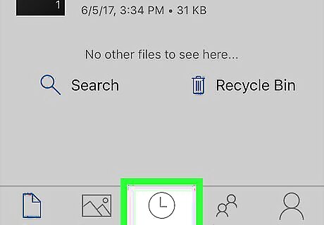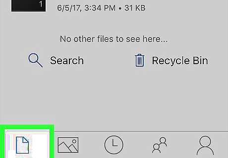 Tap Recent. This tab is to the right of the Photos tab; your recently uploaded and accessed documents appear here. Since photos and videos are displayed on the page to the left of the Recent tab, they won't appear on this page.