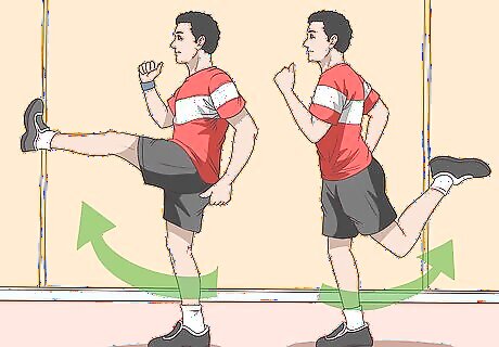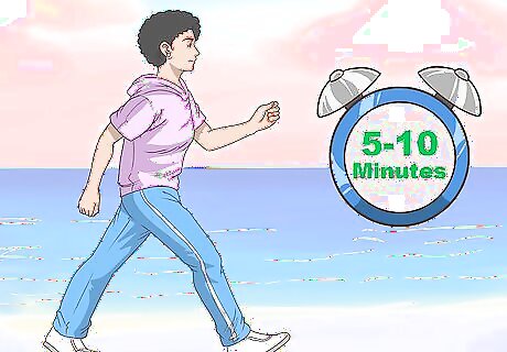 Do appropriate warm-ups. Warming up before sports or intense exercise is crucial for increasing joint and muscle flexibility and improving circulation. A proper warm-up should include dynamic stretches and light cardio activity, and should last at least 5 to 10 minutes. Dynamic stretches are stretches that you perform while moving, such as lunges and kicks. They are typically held for no longer than a few seconds.