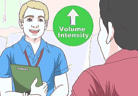 Ease into exercises and activities gradually. Many sports injuries, such as stress fractures or tendonitis, result from overuse. In addition to doing proper warm-ups, you can minimize the risk of overuse injuries by gradually increasing the volume and intensity of your exercise. Talk to your physical therapist about the best way to safely increase the amount and intensity of your exercise. A good rule of thumb is to increase your activity level by 10% each week until you reach your goal.