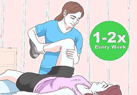 Go to therapy sessions as recommended by your therapist. Most physical therapy involves regular appointments with your therapist. Depending on the nature of your injuries, it may be necessary to meet with your therapist 1-2 times a week or as often as every day during the rehabilitation process. During these appointments, your therapist may help you do exercises and stretches, perform other types of therapy (such as massage), and assess your progress.