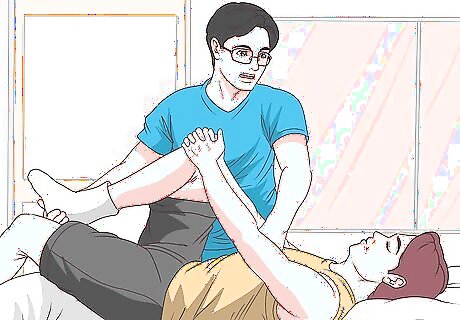 Do exercises at home following your therapist’s suggestions. In addition to guiding you through stretches and exercises at their office, your physical therapist will prescribe therapeutic activities that you can do at home. Carefully follow all their instructions regarding technique, how often you should do the exercises, and for how long. Common types of at-home physical therapy exercises and techniques include: Range of motion exercises, which may involve gently flexing and extending a joint or moving an injured limb carefully in different directions. Strengthening exercises, which may involve using tools such as resistance bands or weights, or using your own body weight to create resistance. Static stretches, which can help improve circulation and relieve muscle tension and stiffness. Treatments to minimize pain and inflammation, such as using ice-packs or compression bandages.