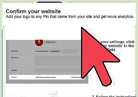 Verify your website with Pinterest. There are many spammers that can copy your business, your pins, your products, and your website. Customers will not realize that is a scam and will spend their money on a fraudulent website. Go to your Pinterest settings and click "confirm website." A verified website will have a check mark in the right corner. A verified website also shows your customers that you are a trustworthy, legit business.
