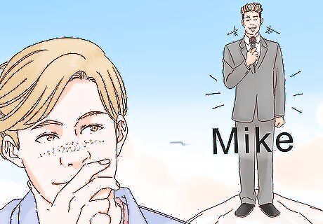 Create a crazy visualization. Another visual technique to help your memory is to create a picture of the person in your mind with something they're associated with. For instance, if you meet Mike who enjoys mountain climbing, picture him standing on top of a mountain (in his suit, to make it more ridiculous), speaking into a microphone (mic) like it's an open-mic night at the coffee shop. The sillier the image you create, the better. Out-of-the-ordinary situations will help it stick better.