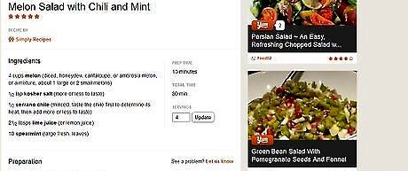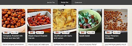 Find recipes. Once your preferences are in place, you can start hunting for recipes. Simply click on the "Recipes" tab at the top right hand corner and you will be taken to the "FoodFinder" search tool. You can either let it find recipes for you based simply on your preferences, or you can type in an ingredient and see what returns come back. For example, keying in "strawberry" returns the recipes shown in the image below.