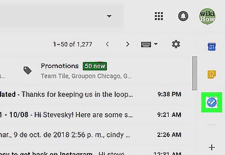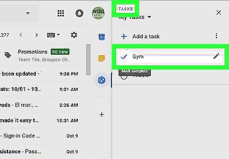 Click the Tasks button. It’s the round blue, white, and orange icon in the bar that runs along the right side of your inbox. Your tasks will appear.