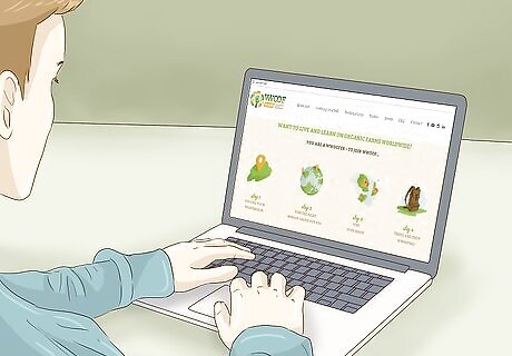 Research organic farming volunteer opportunities. If there is an organic farm near your home, you could attempt to contact the farmer there and ask if he could use any volunteer help. In addition to opportunities on your local neighborhood farm, you can also consider looking for volunteer opportunities with trusted organizations, such as organic farm programs sponsored or set up by universities. Be careful about the opportunities you choose. Never accept an offer from a person or an organic farm that you have no way of researching or doing a background check on.