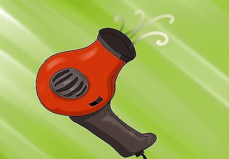 Heat with a hairdryer or portable heater. Obviously, this one will only work if you have access to electricity in the stall. Be careful not to heat the leather or overheat the bit. If using a heater, hang the bit 4+ inches (10+ centimeters) away. Do not use this method on “soft mouth” bits with plastic parts.