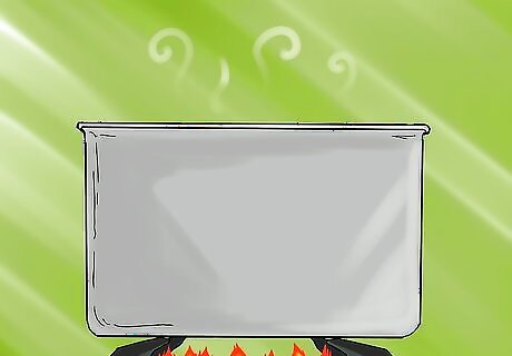 Dunk in hot water, then wipe dry. Heat water until it's just begun to steam, then bring it over to the stall in a bucket. Place a safety hook over the bucket and drape the bridle over it, making sure not to let the leather touch the water or the ground. Dunk the bit for 10–15 seconds in hot water, or 1–2 minutes in lukewarm water. Wipe the bit down with a cloth to dry it. The bit should be warm, but not hot. If you have running hot water in the barn, you can hold the bit under that instead. In very cold weather, you may need a bucket insulator to keep it warm on the way to the stall.
