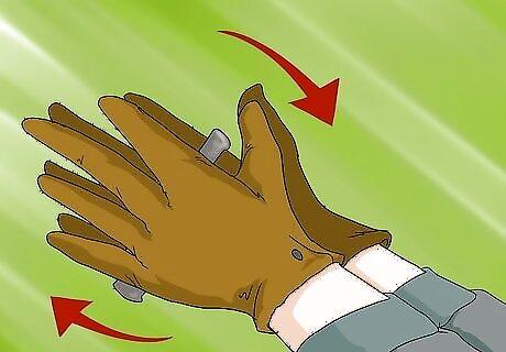 Rub it between your hands. Wear gloves to speed up the process and avoid hurting your hands. Test the temperature of the bit against your cheek, since your hands are a poor judge of temperature. This usually takes several minutes.