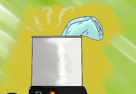 Buy a bit warmer. These thick pads of fabric wrap around the bit and heat it. Some varieties must be plugged in, while others can be microwaved before you head out to the stall. Wrap the bit for about five to ten minutes, checking occasionally to make sure the metal isn't painfully hot. If you can remove the bit from the bridle, you can use a hand warmer instead. Drop the bit inside a long, woolen sock. Drop this sock into its fellow, along with the hand warmer.