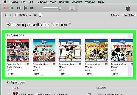 Look through digital video sellers. ITunes has a wider variety of cancelled Disney shows for sale. Type in the title of the show in the search bar. Scroll down until you see the list of TV episodes. There, you can click “see all” to see what’s available. Try adding a season number to your search to refine your results. This option is for those who wish to buy from a safe, legitimate source but don’t mind it being digital.