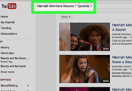 Specify seasons and episodes. If you want to find a specific starting point or episode, search for the title of the episode or include the season and episode number in your search. For example, if you want to watch the first episode of Hannah Montana, either search "Hannah Montana Season 1 Episode 1" or "Lilly, do you want to know a secret?" If the episode is on YouTube, it will come up during one of these searches. TV databases and other sites, including Wikipedia, often contain a list of episodes grouped by season with a brief synopsis. Use this to help find specific episodes.