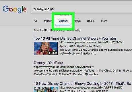 Check Disney's YouTube channel. Type Disney into the search bar on Youtube. After searching, scroll down the page to find Disney’s official channel. Change the filter tab in the upper left corner to channels if you can’t find it. Scroll through their list of video uploads and playlists to see if they have the show you want. Because Disney’s official channels don’t have many full episodes, it is best for getting a taste of old shows.