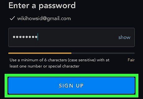 Enter a password and tap SIGN UP. Your password must be at least 6 characters long and contain at least one special character or number.
