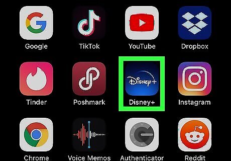 Open the Disney+ app. It's the blue icon labeled "Disney" with a plus (+) symbol. If you haven't installed the app yet, here's how you can get it: Open the App Store, which is the blue-and-white "A" icon typically found on the home screen. Tap the magnifying glass at the bottom-right corner. Type disney plus and tap the Search key on the keyboard. Tap GET next to "Disney+." It should be the first option in the list. Follow the on-screen instructions to confirm your identity and download the app.