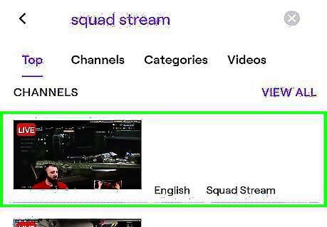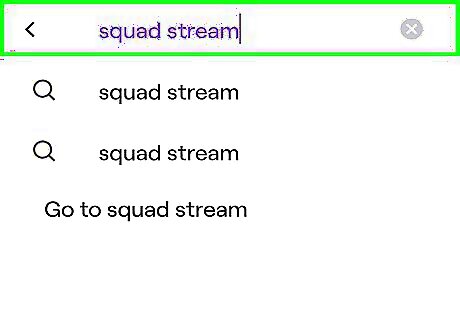 Type “Squad Stream” into the search bar. This pulls up any live squad streams broadcasting when you search for the squad stream tag.