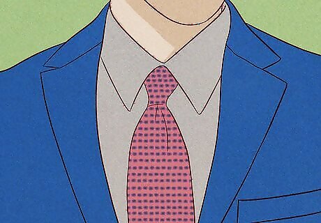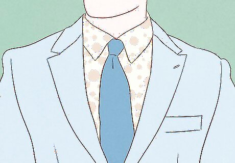 Choose a patterned tie to stand out against a solid shirt. Look for something simple but distinct from your shirt and jacket. Try a light-colored tie, such as red or blue. Then, get one with a faint print, usually floral or stripes. Printed ties are more informal than solid ones and add some fun to your outfit. If the event is more on the formal side of the spectrum, wear a solid tie instead. Choose a deep red color or a shade of blue that is a little lighter than your suit.