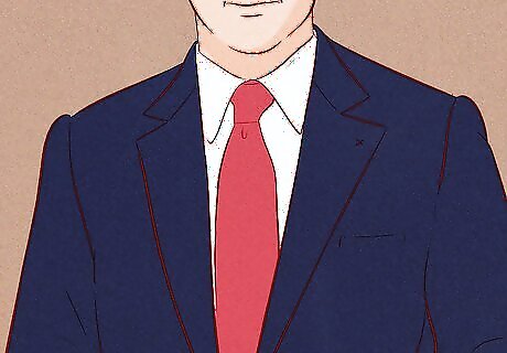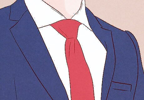 Pick a plain, solid tie that fits well in a business formal setting. Dark-colored ties are usually the best option for looking like a successful business person. Red or burgundy works well, but mix up your tie choices if you wear suits often. You could wear a black tie one day, then switch to a green one the next. Stay away from lighter colors that will make you stand out a little too much. Pinstripes or other prints can work if you’re careful. Don’t wear these ties with a pinstriped shirt or jacket. Also, pick small, faint prints to keep your outfit spiffy.