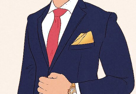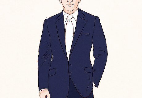 Go without a tie if you’re aiming for an informal look. You don’t always need a tie. Going without one can be a good strategy for the most casual events, such as hangouts with friends. Wear a nice shirt, then show it off by unbuttoning your jacket. White shirts usually work best without a tie. They tend to appear neat and fashionable, but you could try another color for a bolder look.